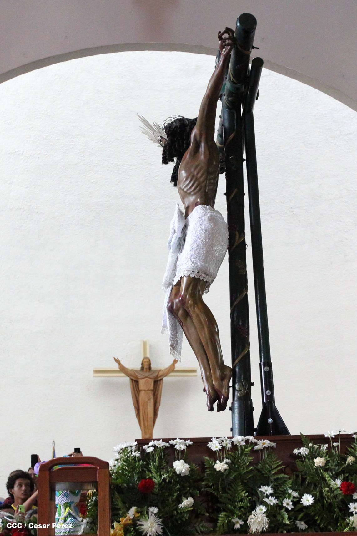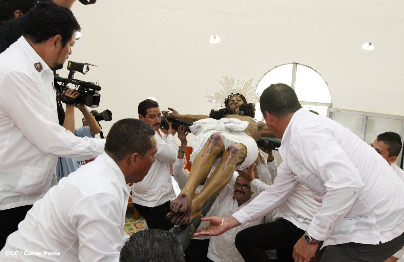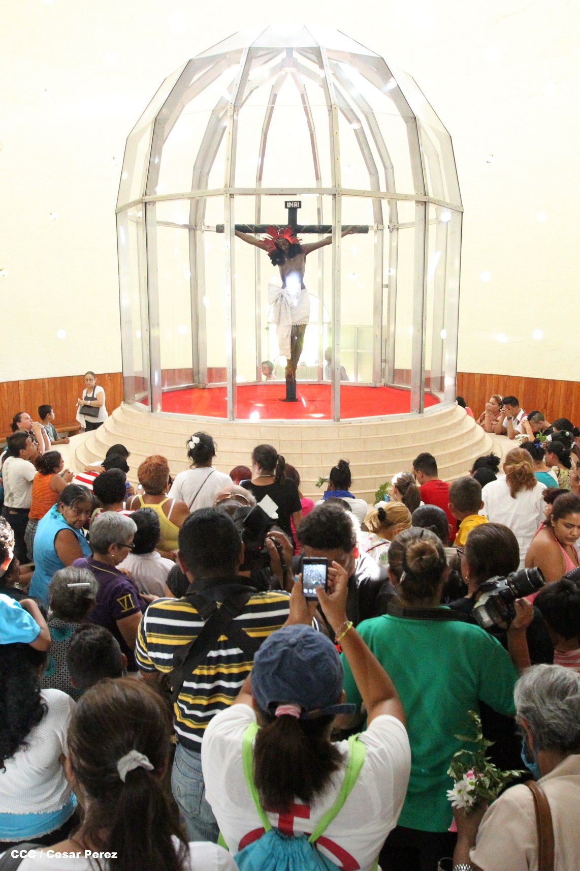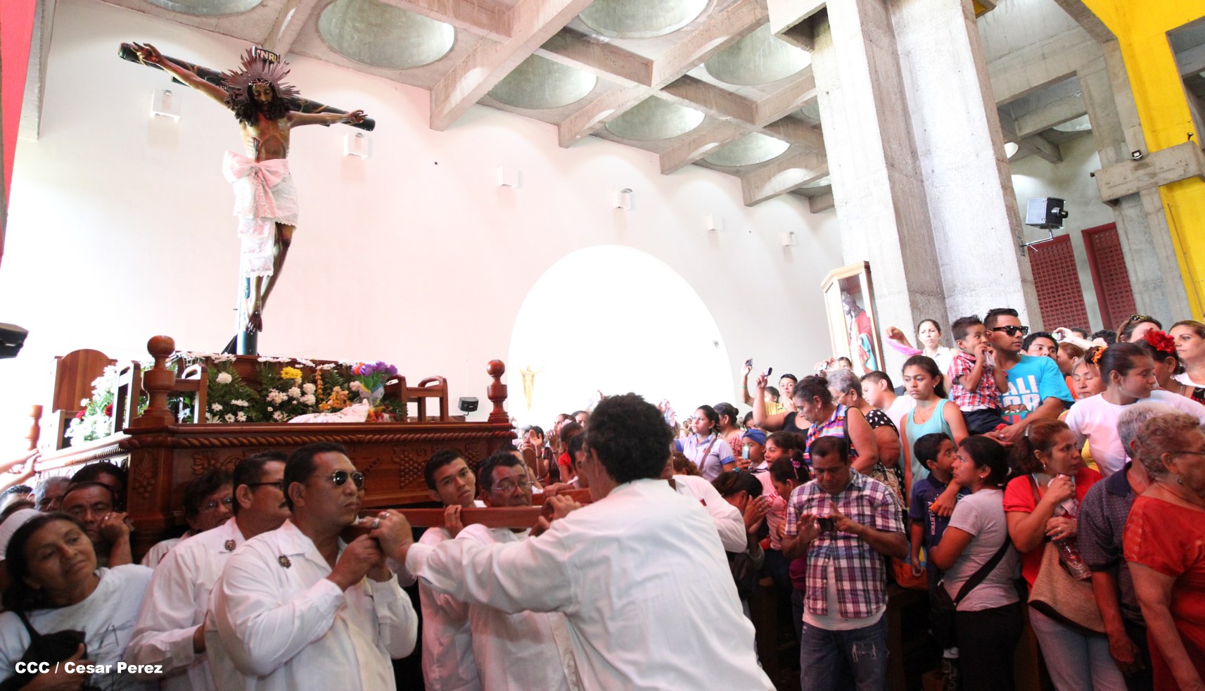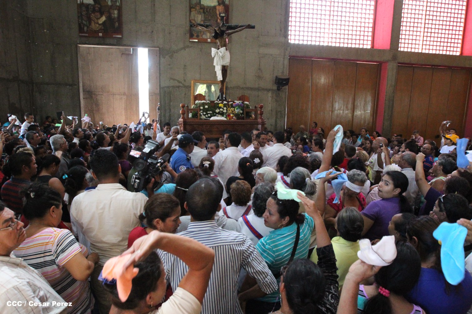 “La Sangre de Cristo tiene Poder”, con esta y otras frases de alabanza, decenas de nicaragüenses de todo el país, participaron de la subida de la santa imagen en la Catedral Metropolitana de Managua, lo que hace culminar oficialmente los actos religiosos relacionados con la Semana Santa.