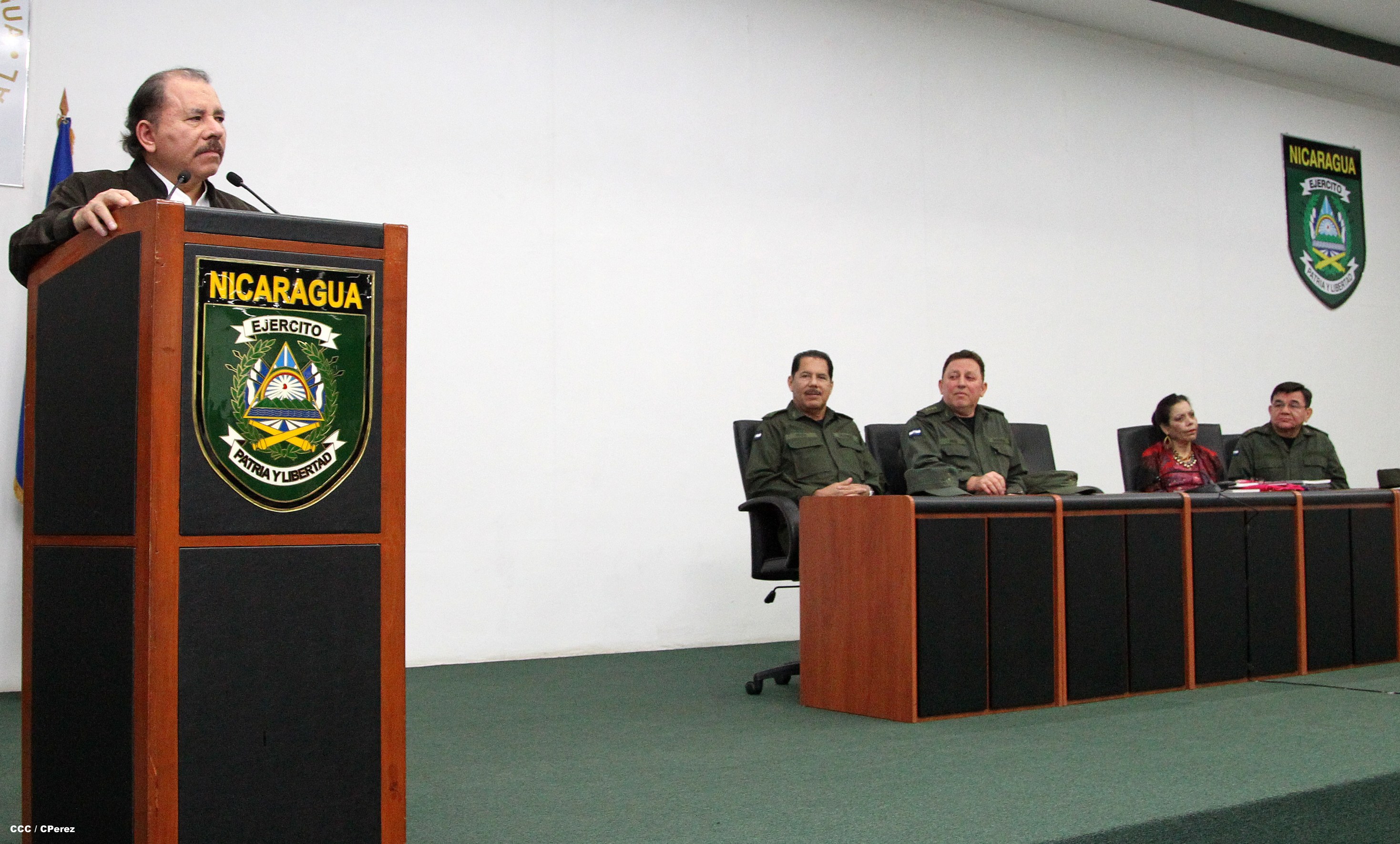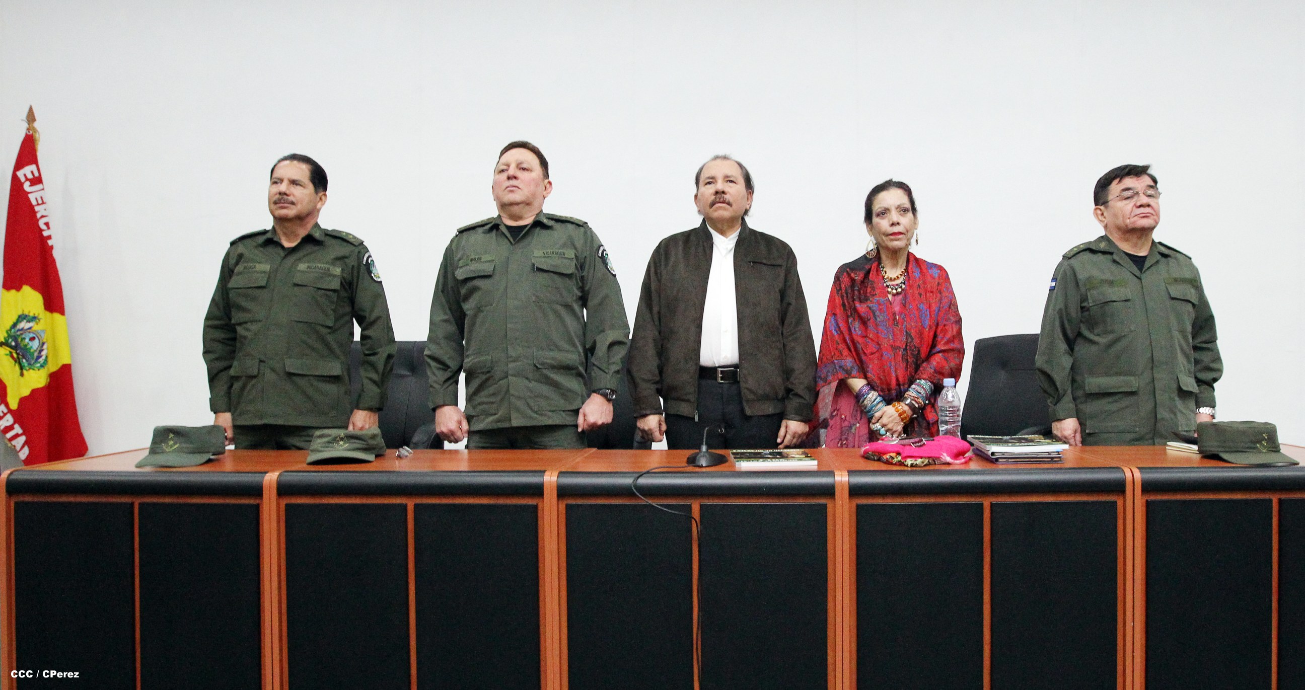 El Presidente de la República, Comandante Daniel Ortega, y la Coordinadora del Consejo de Comunicación y Ciudadanía, Compañera Rosario Murillo, recibieron de parte del alto mando del Ejército de Nicaragua, la Memoria Anual 2014 de esta institución.