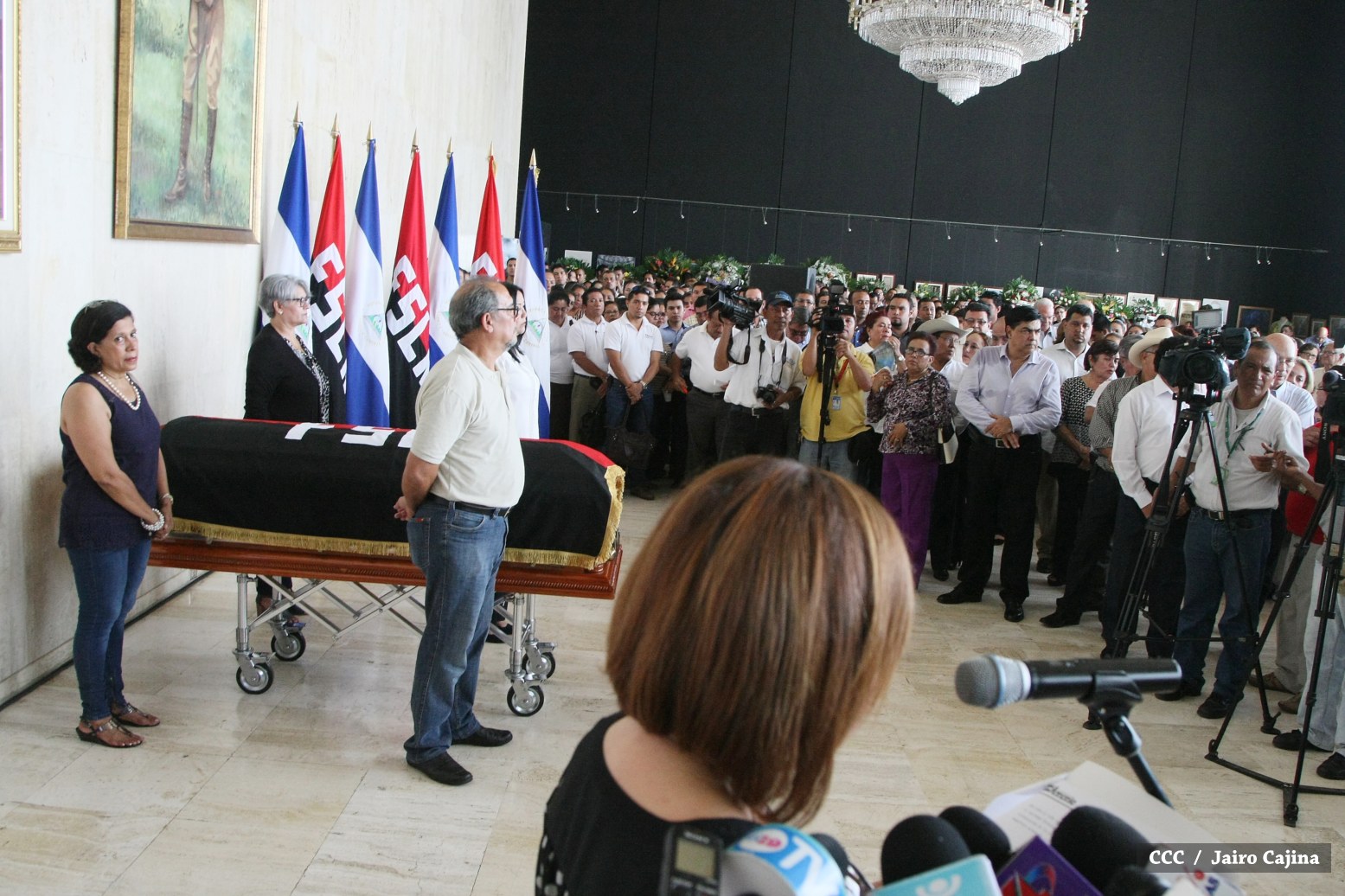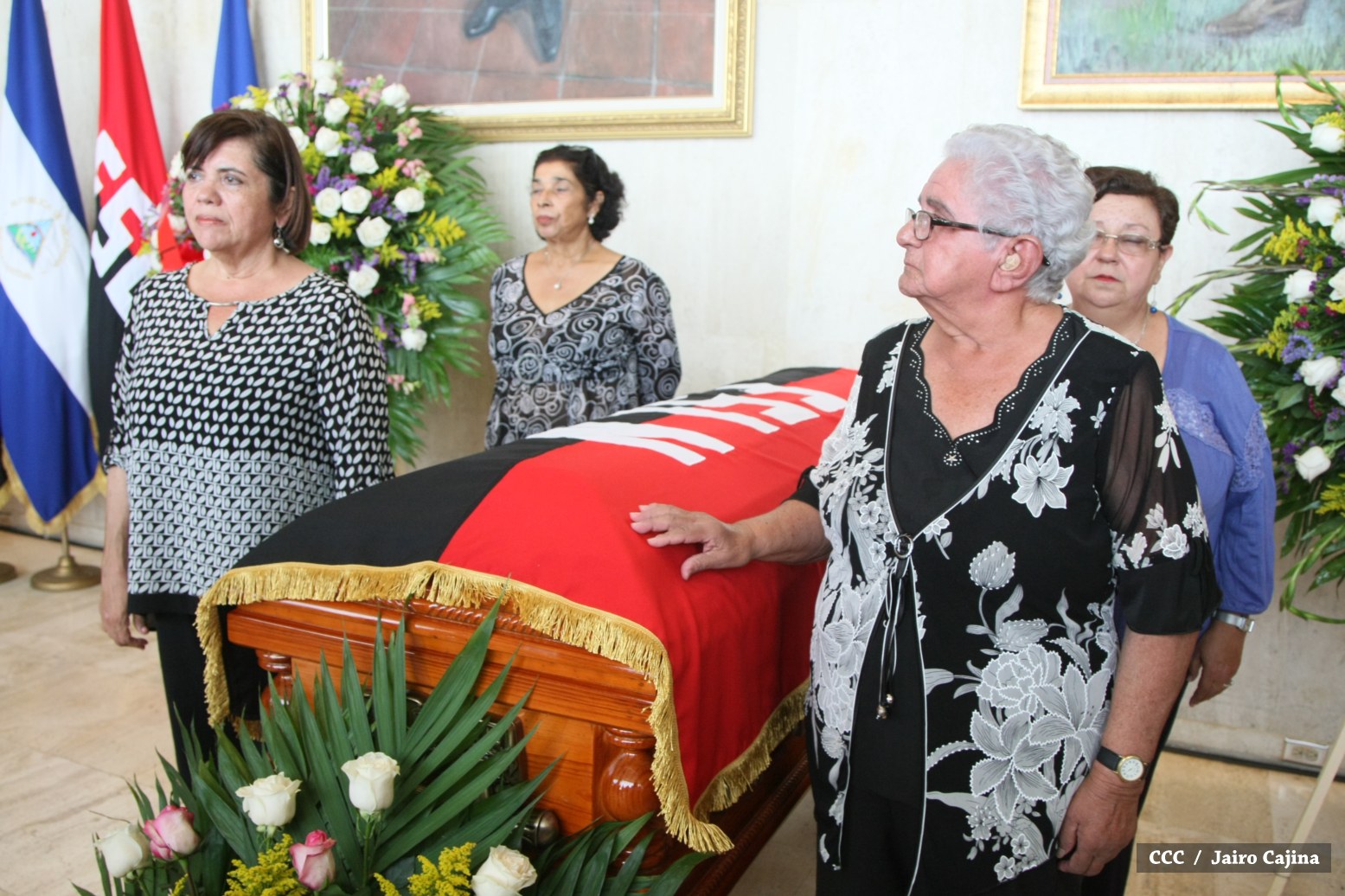 Nicaragüenses de todos los sectores del país se encuentran en el Salón de los Cristales del Teatro Rubén Darío, para rendir homenaje póstumo a la compañera alcaldesa de Juigalpa, María Elena Guerra Gallardo, quien pasó a otro plano de vida este martes.
