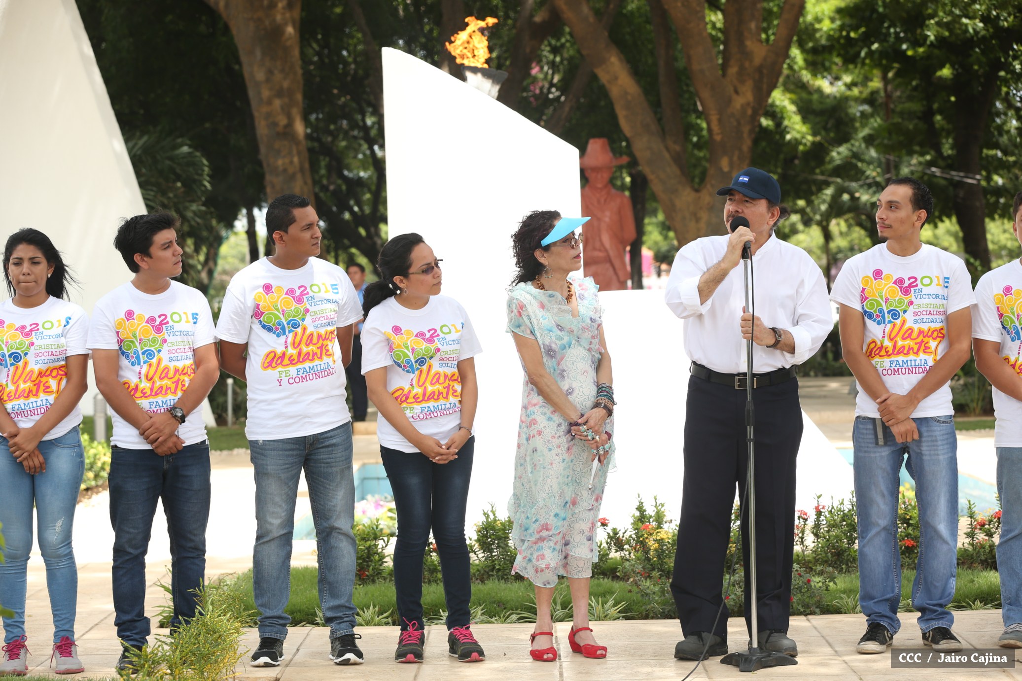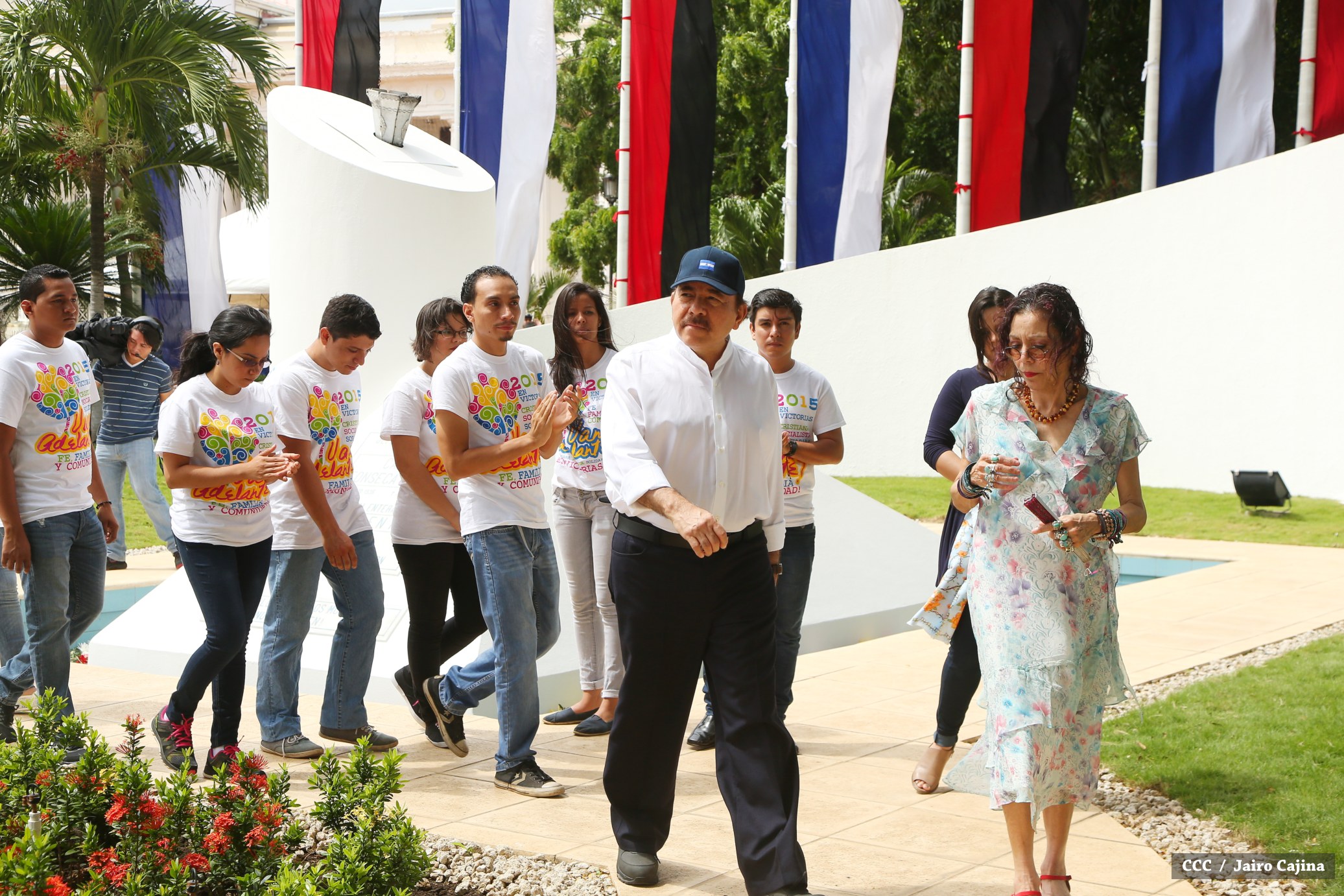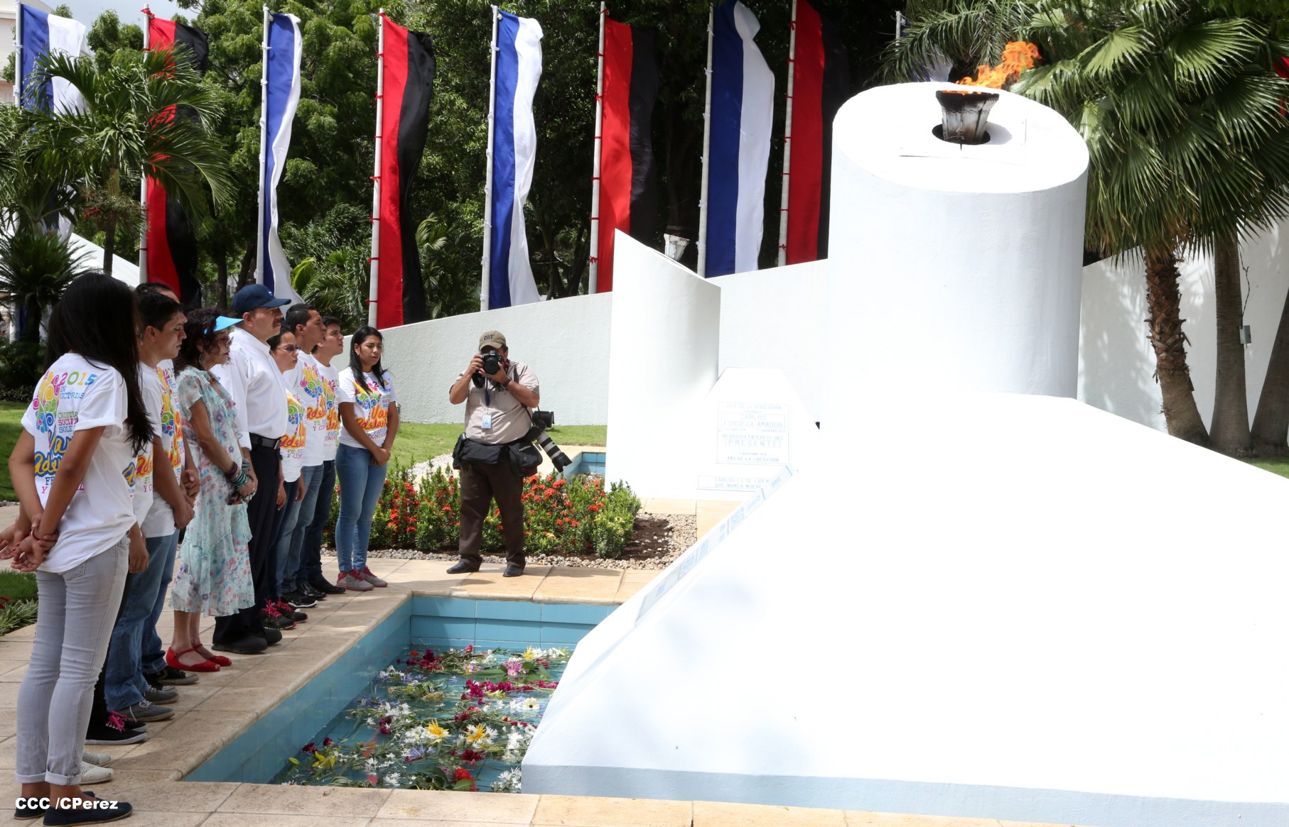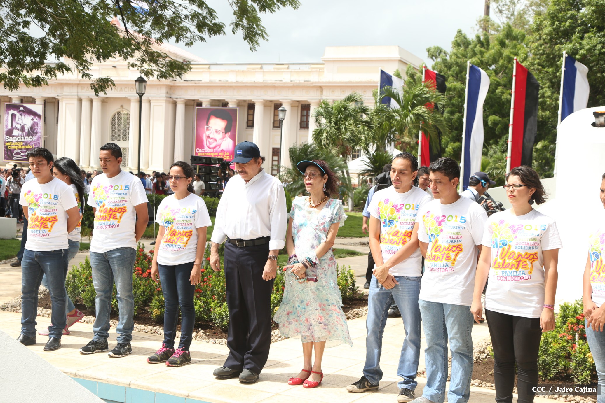 El Presidente de la República Comandante Daniel Ortega Saavedra y la compañera Rosario Murillo, coordinadora del Consejo de Comunicación y Ciudadanía, junto a miembros de la Juventud Sandinista 19 de Julio, rindieron honores al Comandante en Jefe de la Revolución Popular Sandinista, Carlos Fonseca Amador, en celebración del 79 aniversario de su natalicio.