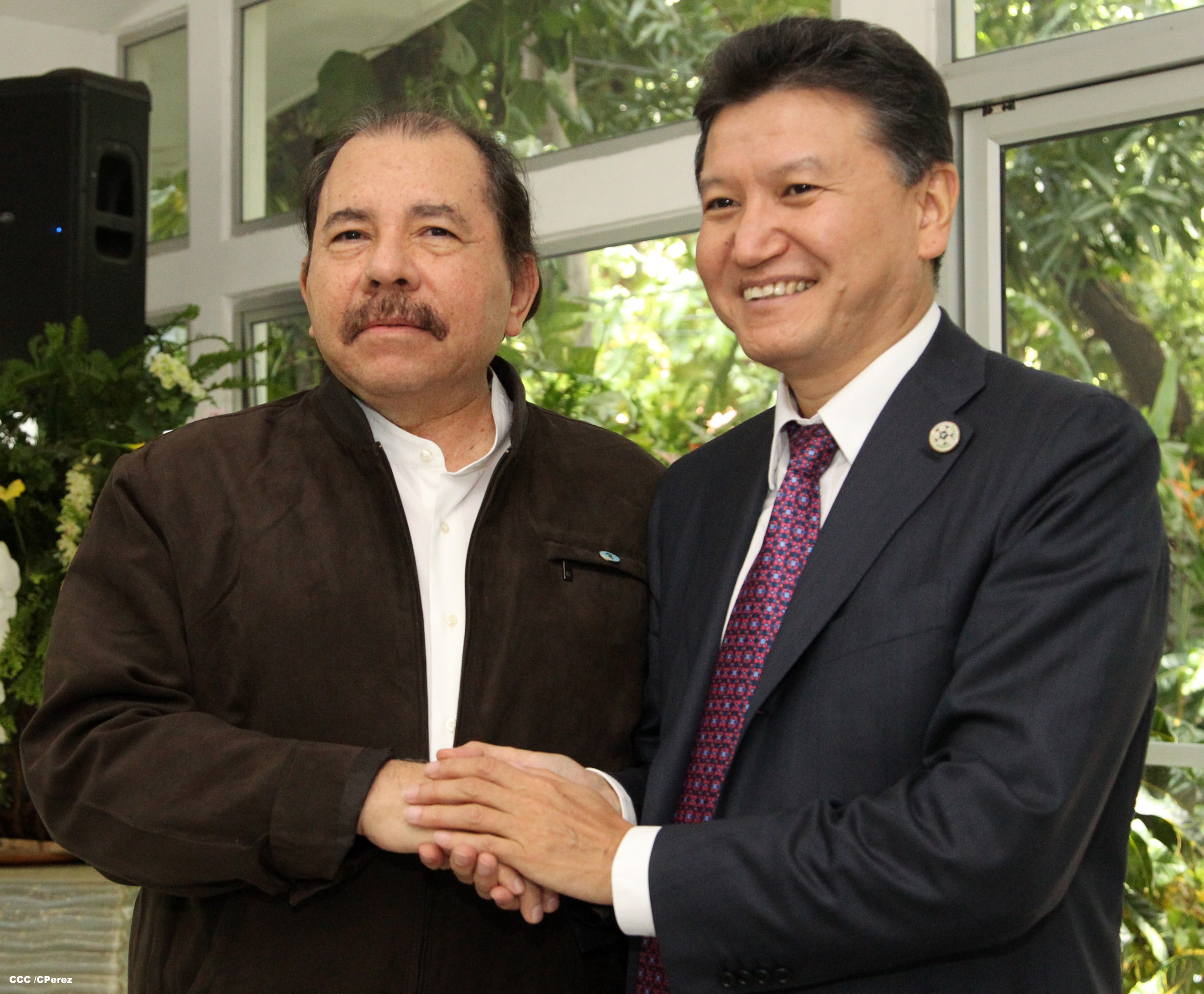 El Presidente de la República, Comandante Daniel Ortega, se reunió con el presidente de la Federación Internacional de Ajedrez (FIDE), el maestro ruso Kirsan llyumzhinov, quien visita Nicaragua con el objetivo de promover el desarrollo de este deporte-ciencia.