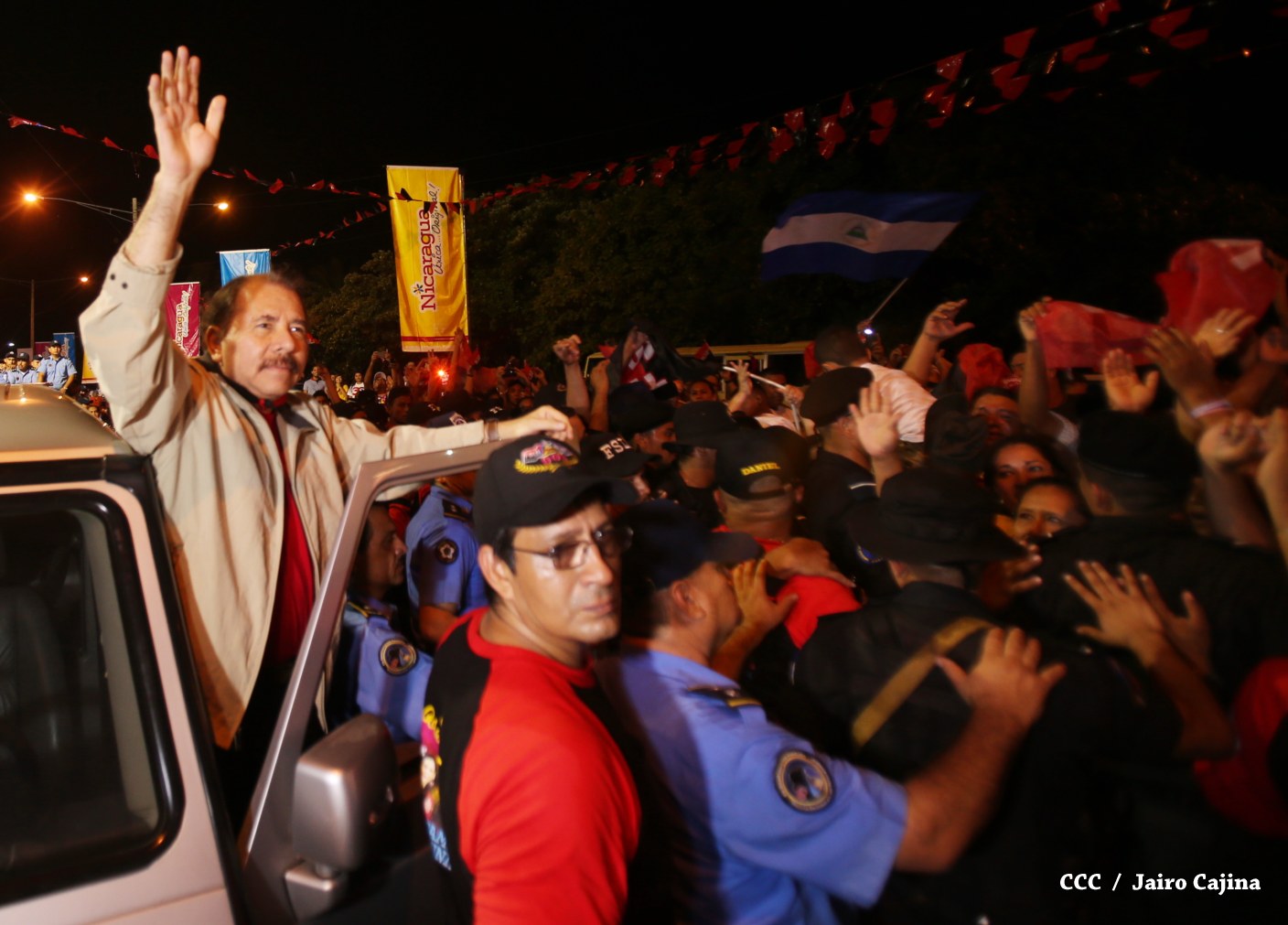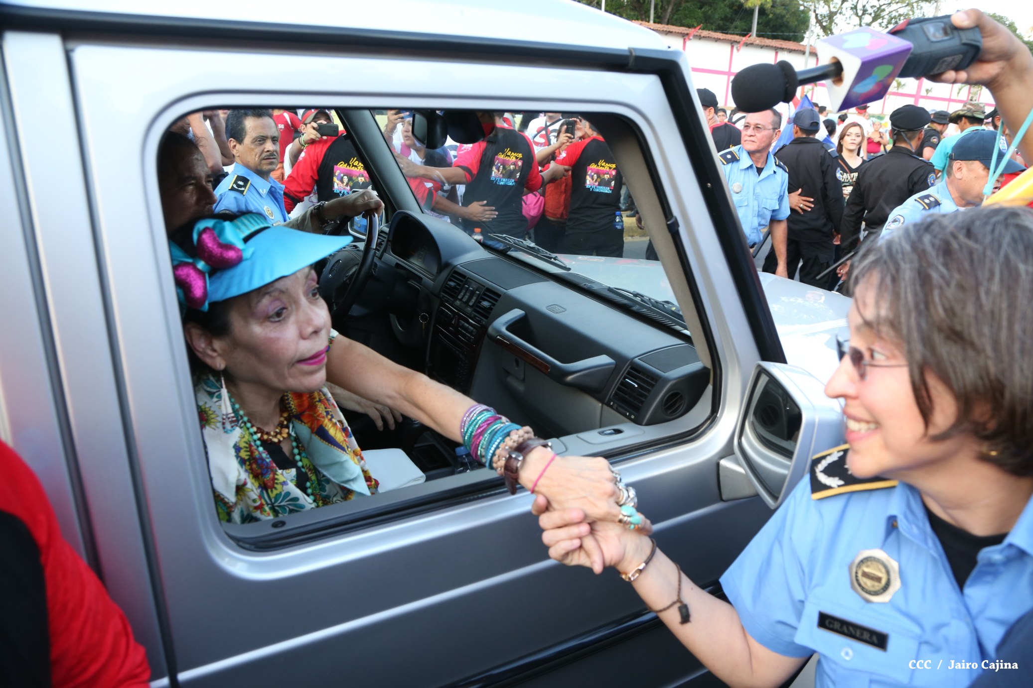 El Comandante-Presidente Daniel Ortega y la Coordinadora del Consejo de Comunicación, Compañera Rosario Murillo, arriban a la combativa comunidad de Monimbó, en la culminación del 36 Aniversario del Repliegue Táctico a Masaya.