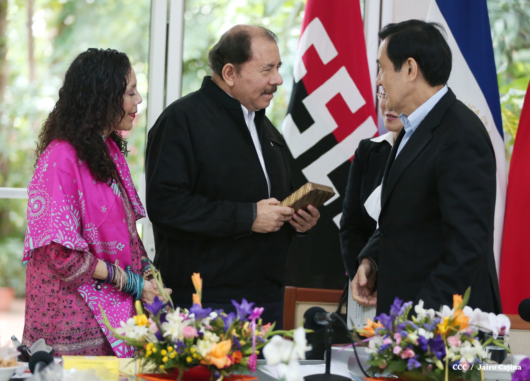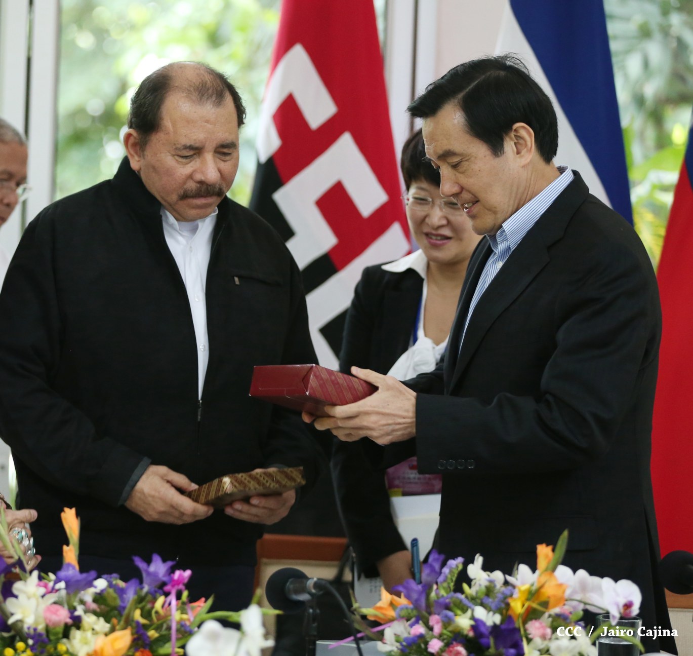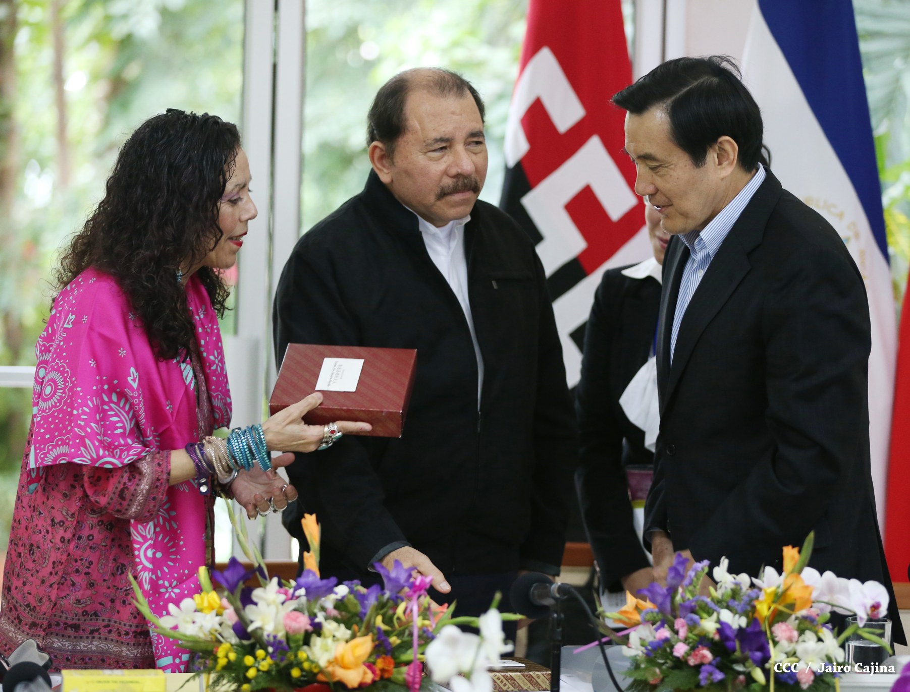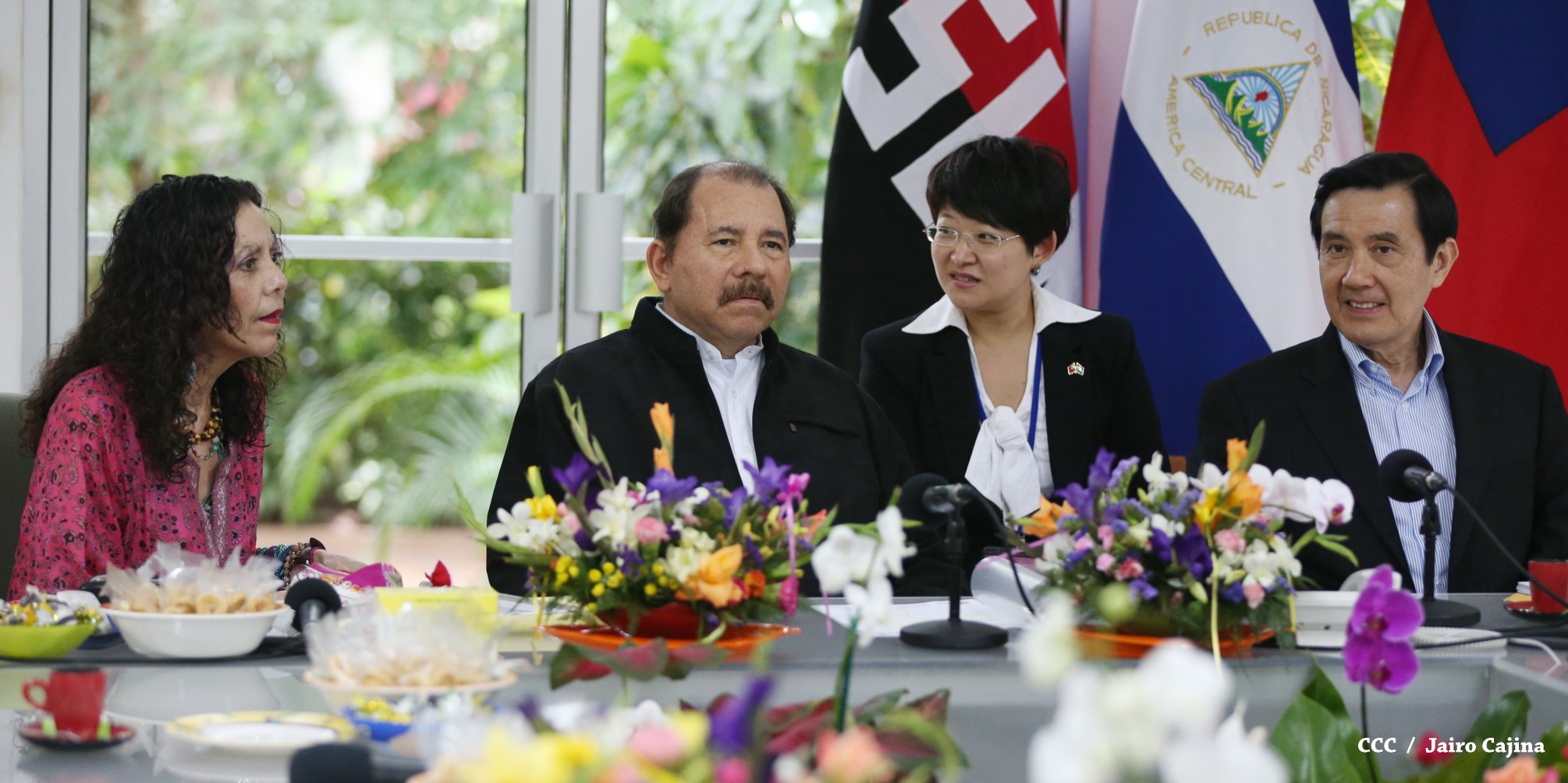 El Presidente de la República, Comandante Daniel Ortega Saavedra, y la Coordinadora del Consejo de Comunicación y Ciudadanía, Compañera Rosario Murillo, sostuvieron este miércoles un encuentro con el Presidente de China-Taiwán, Ma Ying-Jeou, a quien el mandatario nicaragüense le solicitó el apoyo para la realización de los estudios de factibilidad de un programa de riego en la zona seca del país y la construcción del puerto Monkey Point, en el Caribe.