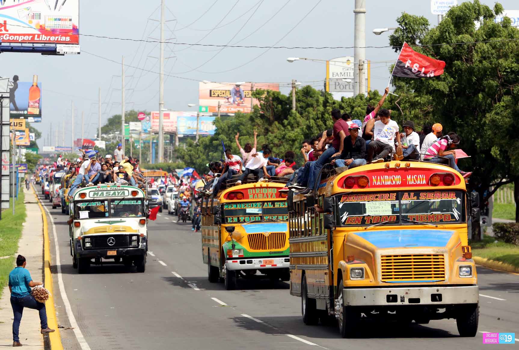 Familias de Masaya y Granada entraron en caravana a Managua para celebrar el 36 Aniversario de la Revolución Popular Sandinista.