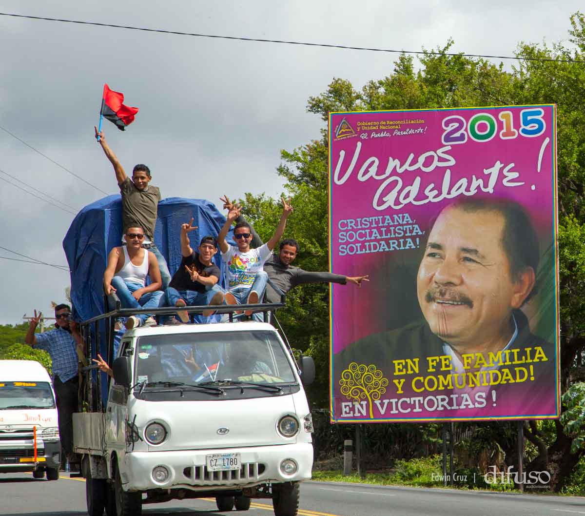 Familias de todo el país entran a Managua en inmensas caravanas llenas de entusiasmo, alegría y fe, para celebrar a lo grande en la Plaza La Fé, el 36 Aniversario de la Revolución.