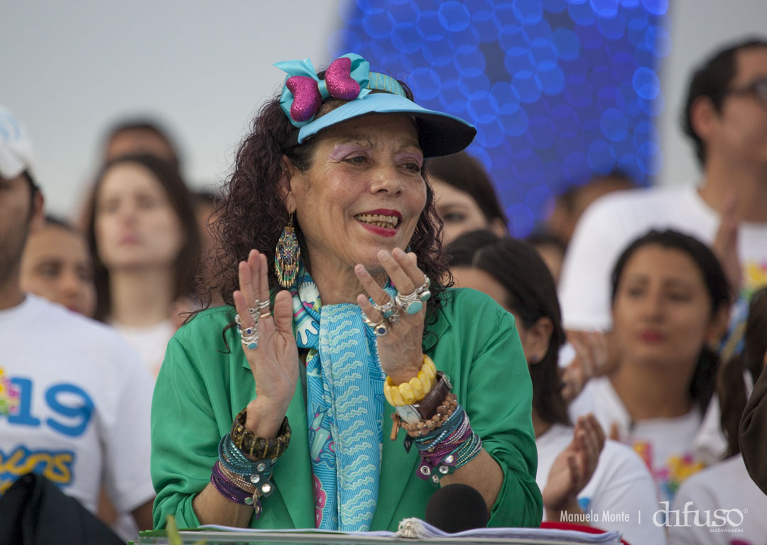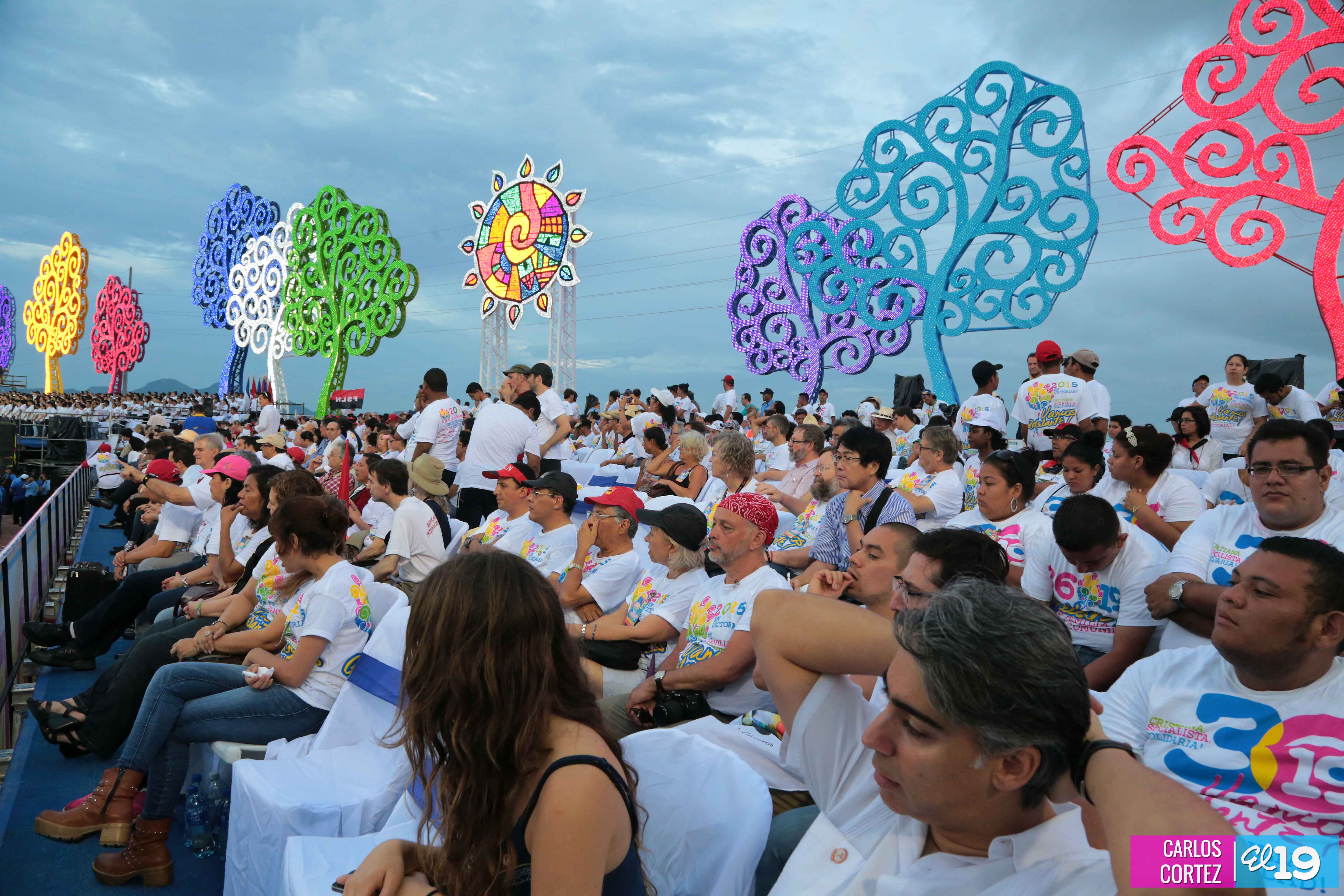 Más fotografías de la masiva celebración del pueblo nicaragüense en Plaza La Fé, conmemorando el 36 Aniversario del Triunfo de la Revolución Popular Sandinista.