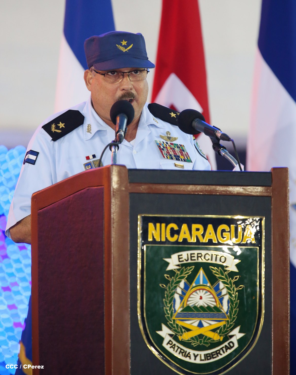 El Presidente de la República, Comandante Daniel Ortega Saavedra, recordó que la razón de ser del Ejército de Nicaragua y en particular de la Fuerza Aérea, es la vida para servir a la familia, a la comunidad, a la Patria y a la humanidad.