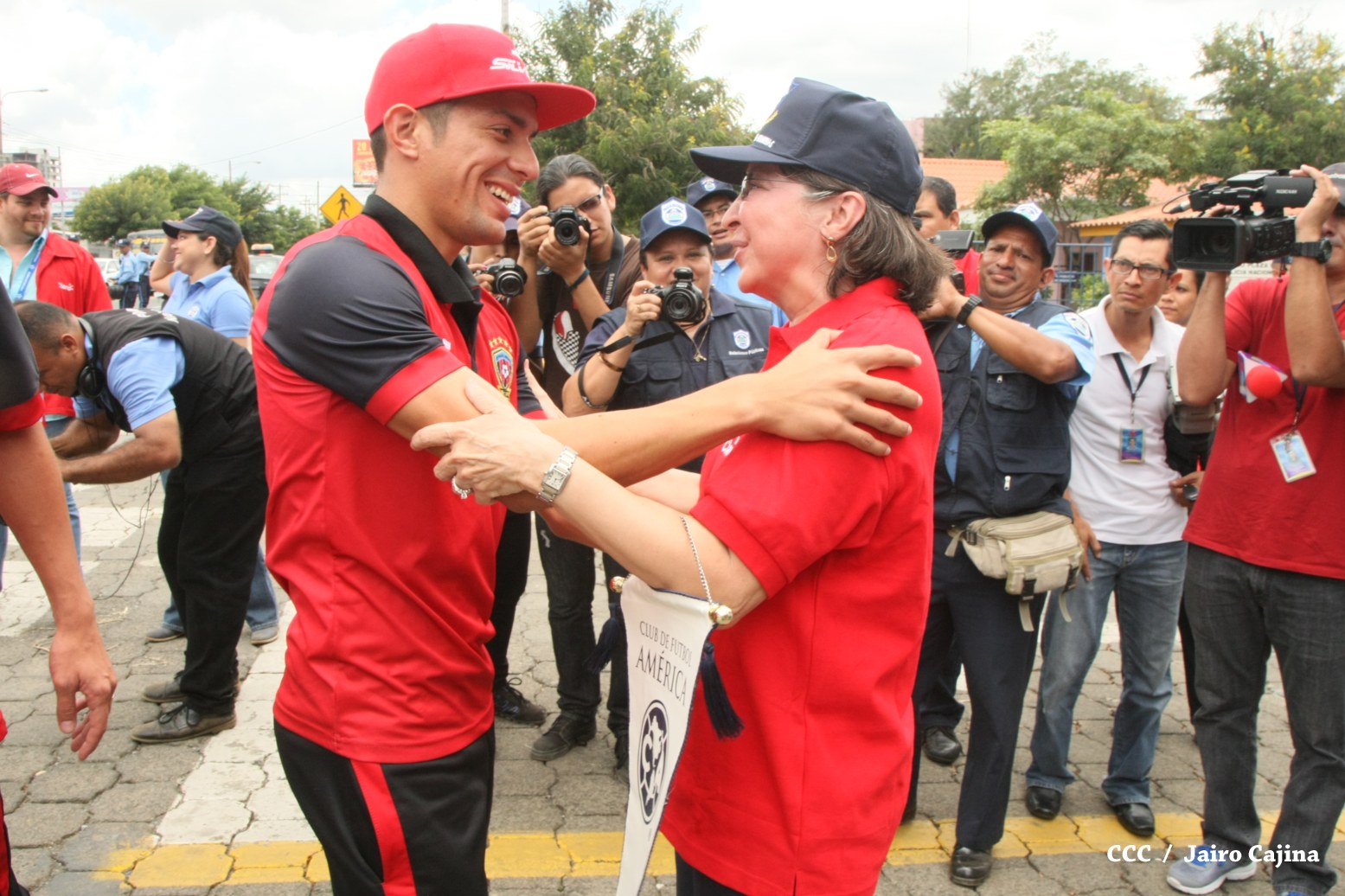 Primera Comisionada Aminta Granera Sacasa, jefa de la Policía Nacional, recibe al equipo de Walter Ferreti, tras su destacada participación en México ante el equipo del América en la Liga de Campeones de la CONCACAF.