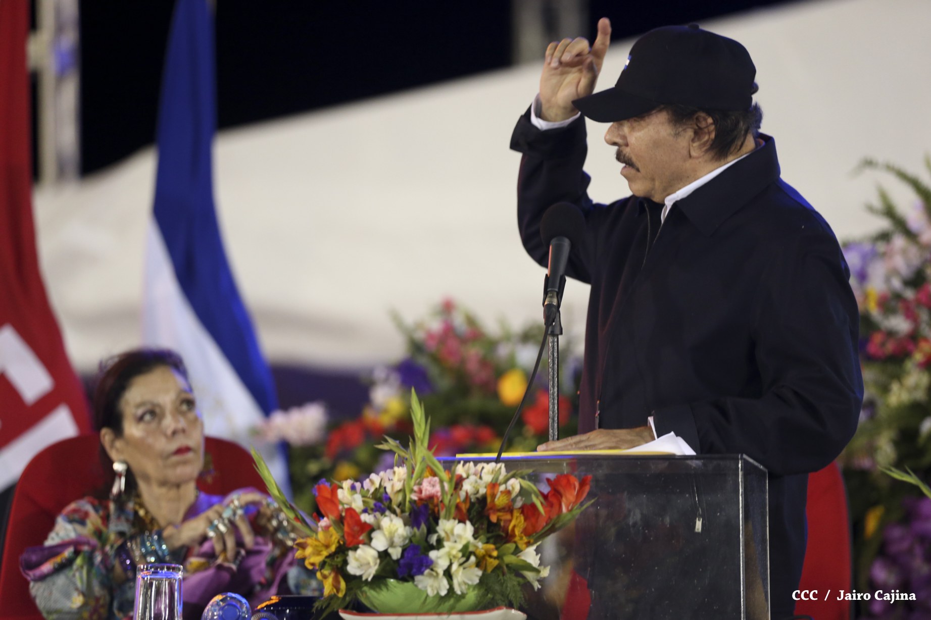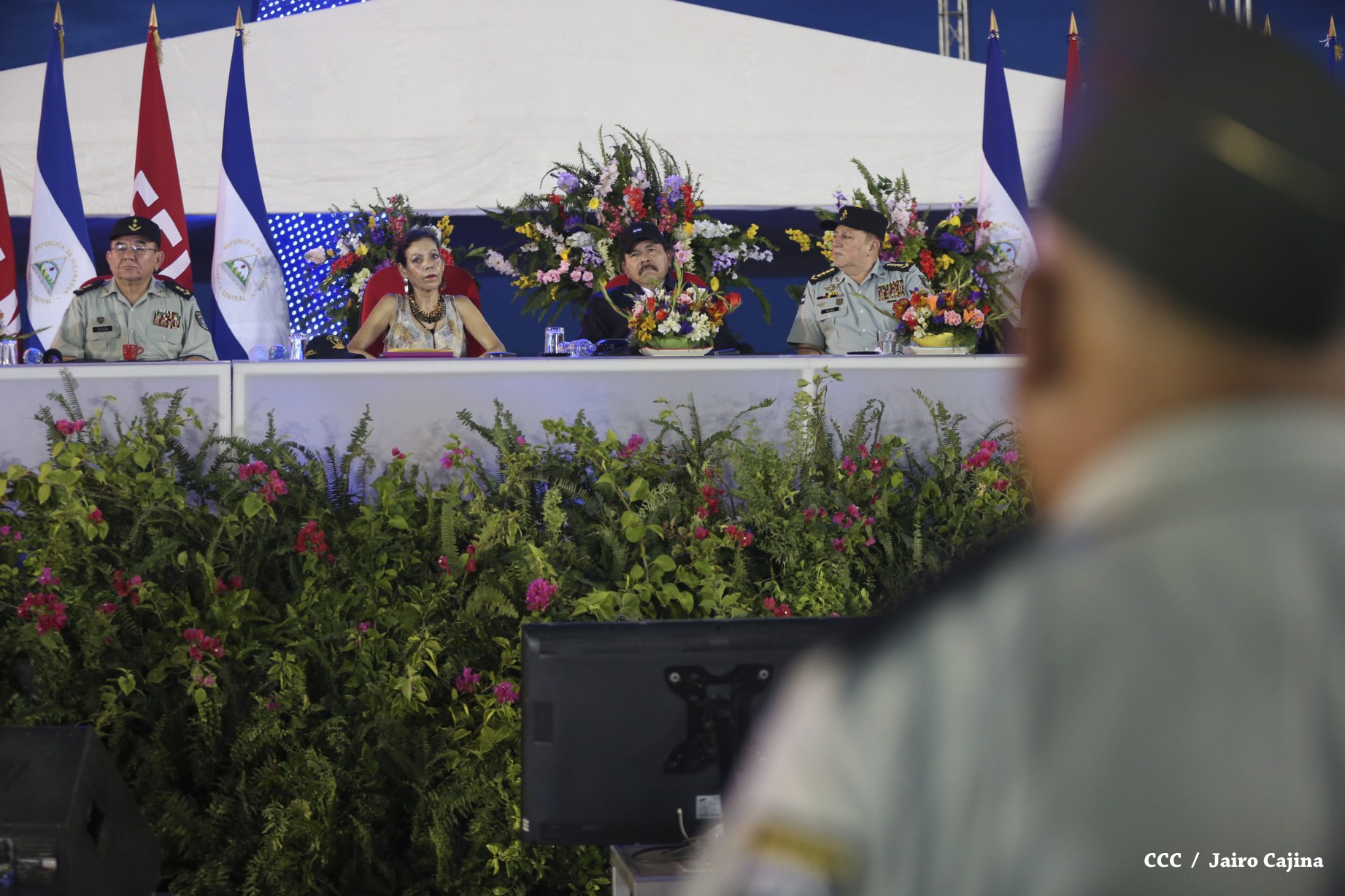 El Presidente de Nicaragua, Comandante Daniel Ortega, y la Coordinadora del Consejo de Comunicación y Ciudadanía, Compañera Rosario Murillo, participaron en el acto del 36 aniversario de constitución del Ejército de Nicaragua.