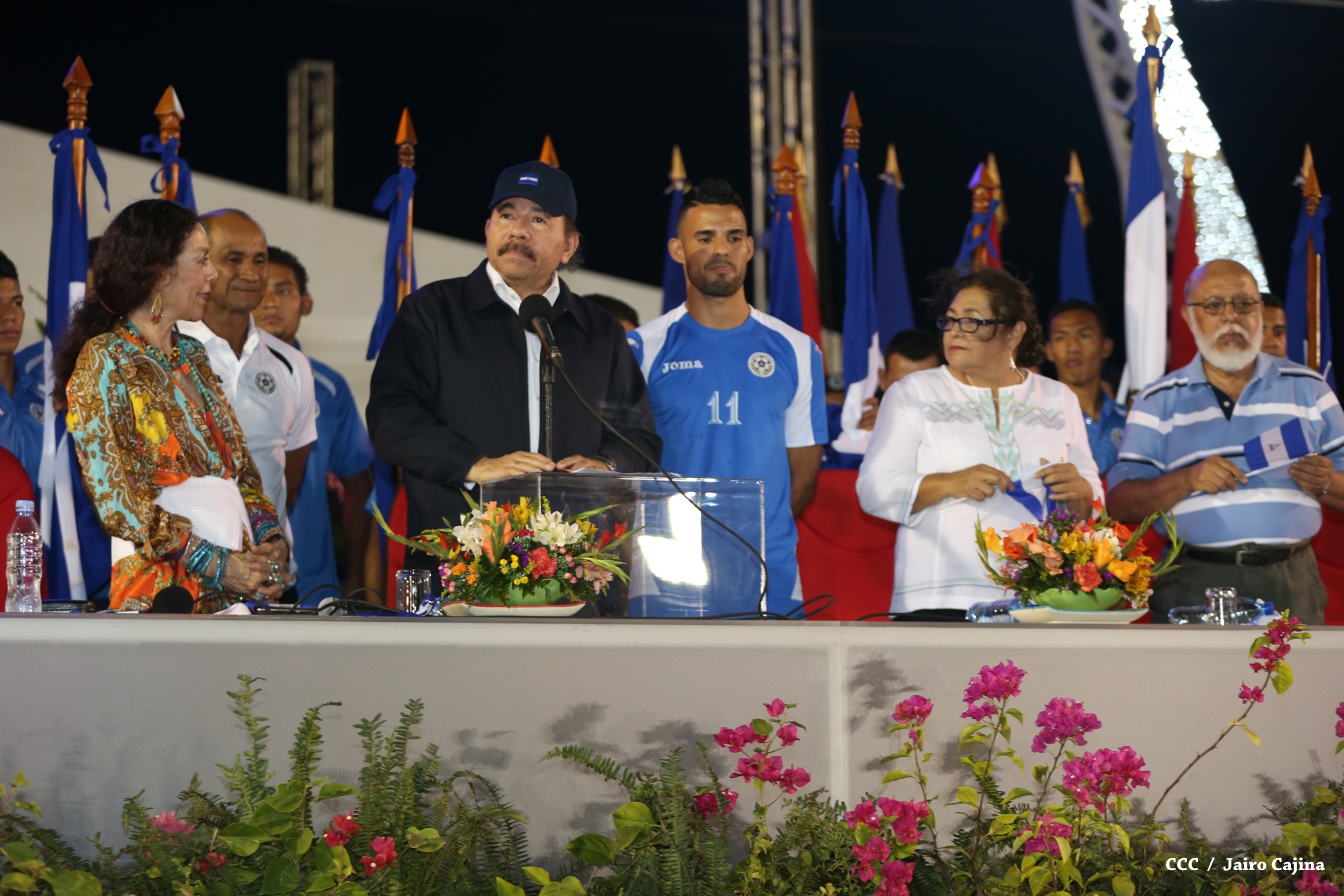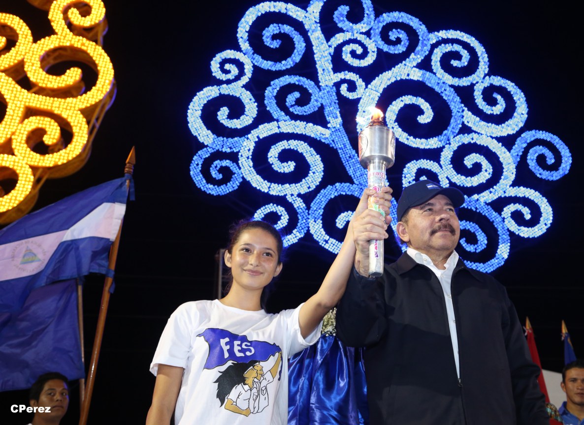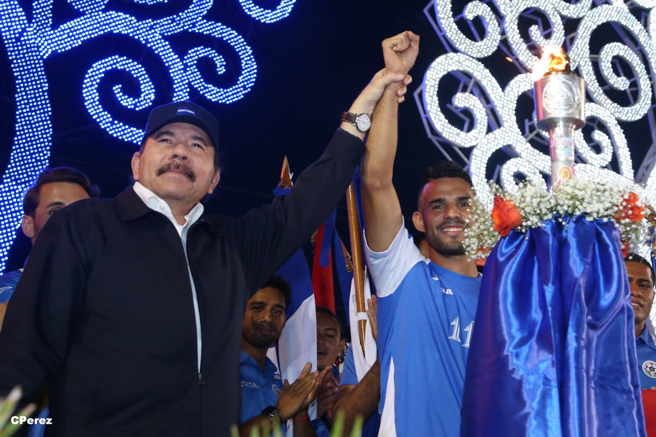 El Presidente de la República, Comandante Daniel Ortega Saavedra, recibió de manos de la Selección Nicaragüense de Fútbol, la Antorcha de la Independencia y la Unidad Centroamericana, en un acto conmemorativo celebrado este viernes en Plaza La Fé “Juan Pablo II”.