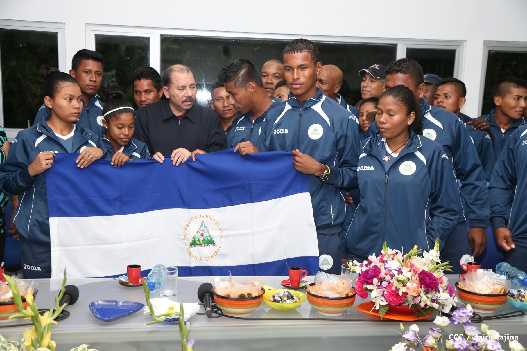 El Presidente de la República, Comandante Daniel Ortega Saavedra, abanderó este viernes a la delegación de atletas que participará en los Primeros Juegos Mundiales de los Pueblos Indígenas, a realizarse en Brasil entre el 18 de octubre y el 2 de noviembre. De la misma forma abanderó a la selección que participará entre el 17 y el 24 de octubre, en Managua, en el Campeonato Panamericano de Beisbol Infantil AA.