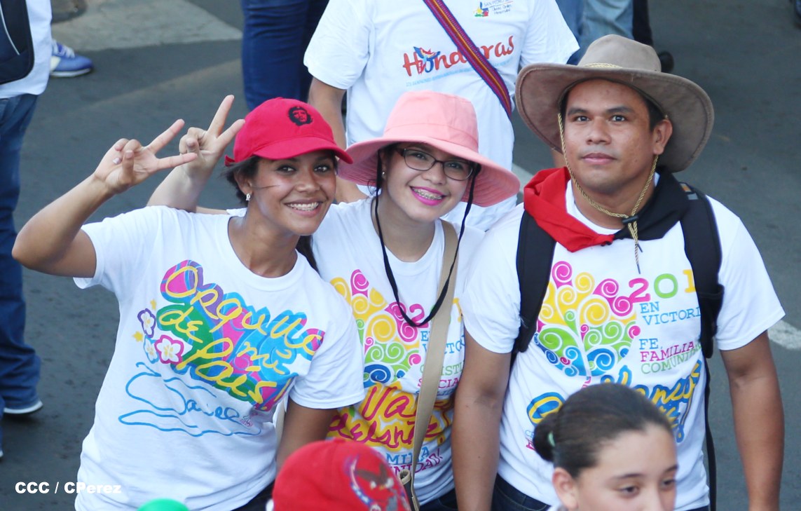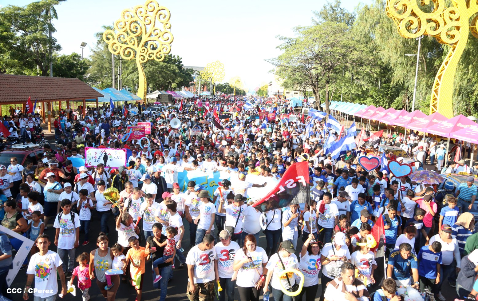 Nuestro tricampeón mundial del boxeo, Román “Chocolatito” González, participó de la Caminata Trabajo y Paz… Unida, Nicaragua Triunfa!, en compañía de otros jóvenes y el pueblo nicaragüense que celebró la restitución de sus derechos.