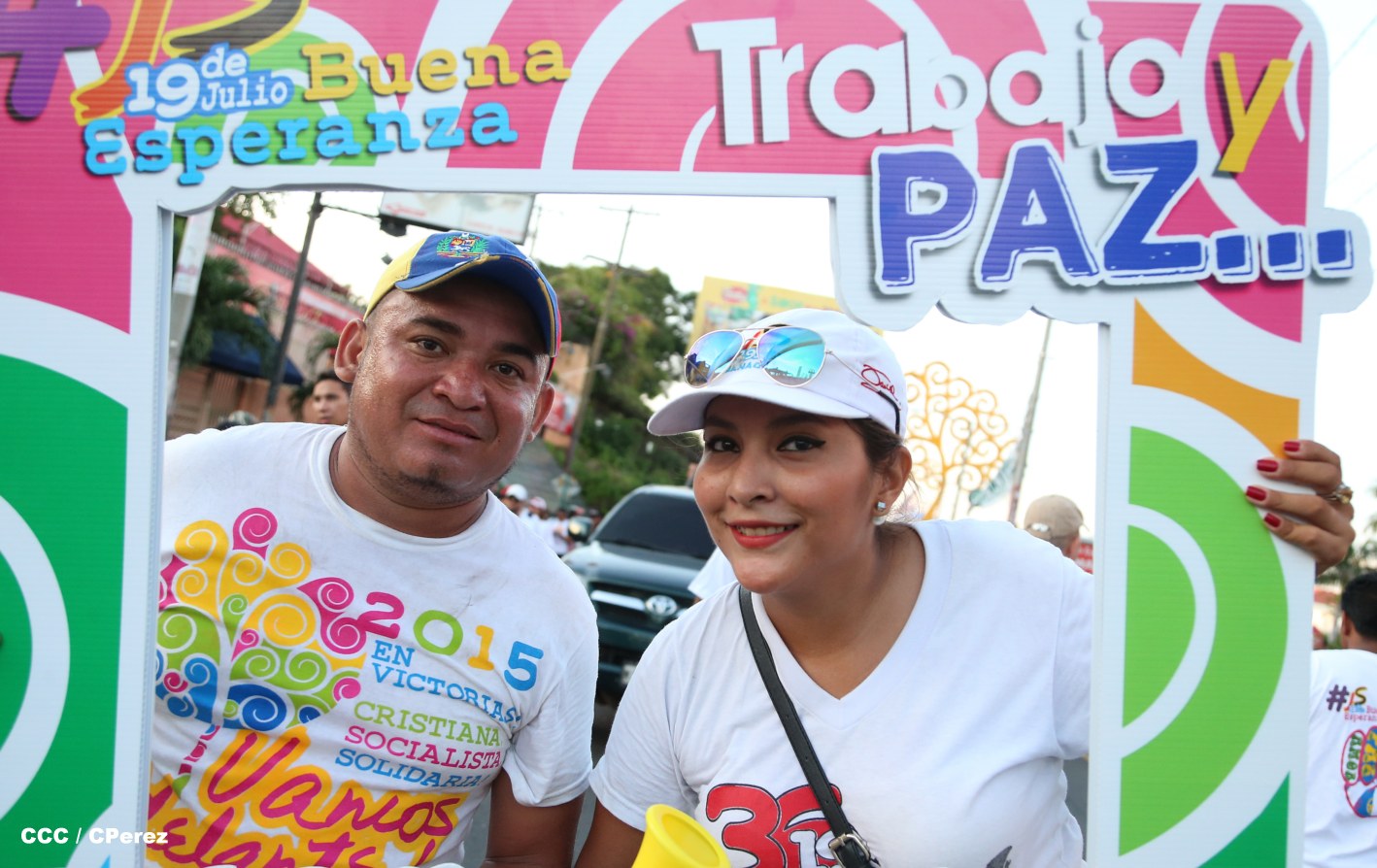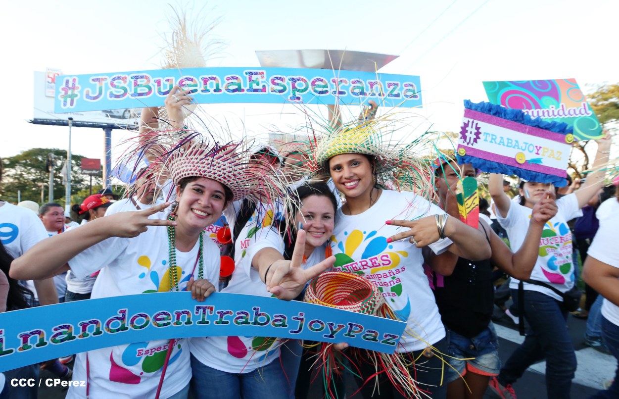 El pueblo nicaragüense se desbordó este martes en las calles de Managua, para alzar las banderas de la Paz y el Trabajo, durante una inmensa caminata llena de amor, alegría y juventud vibrante, celebrando las importantes Rutas de Prosperidad trazadas por el Gobierno Sandinista, conducido por el Presidente Daniel Ortega y la compañera Rosario Murillo.