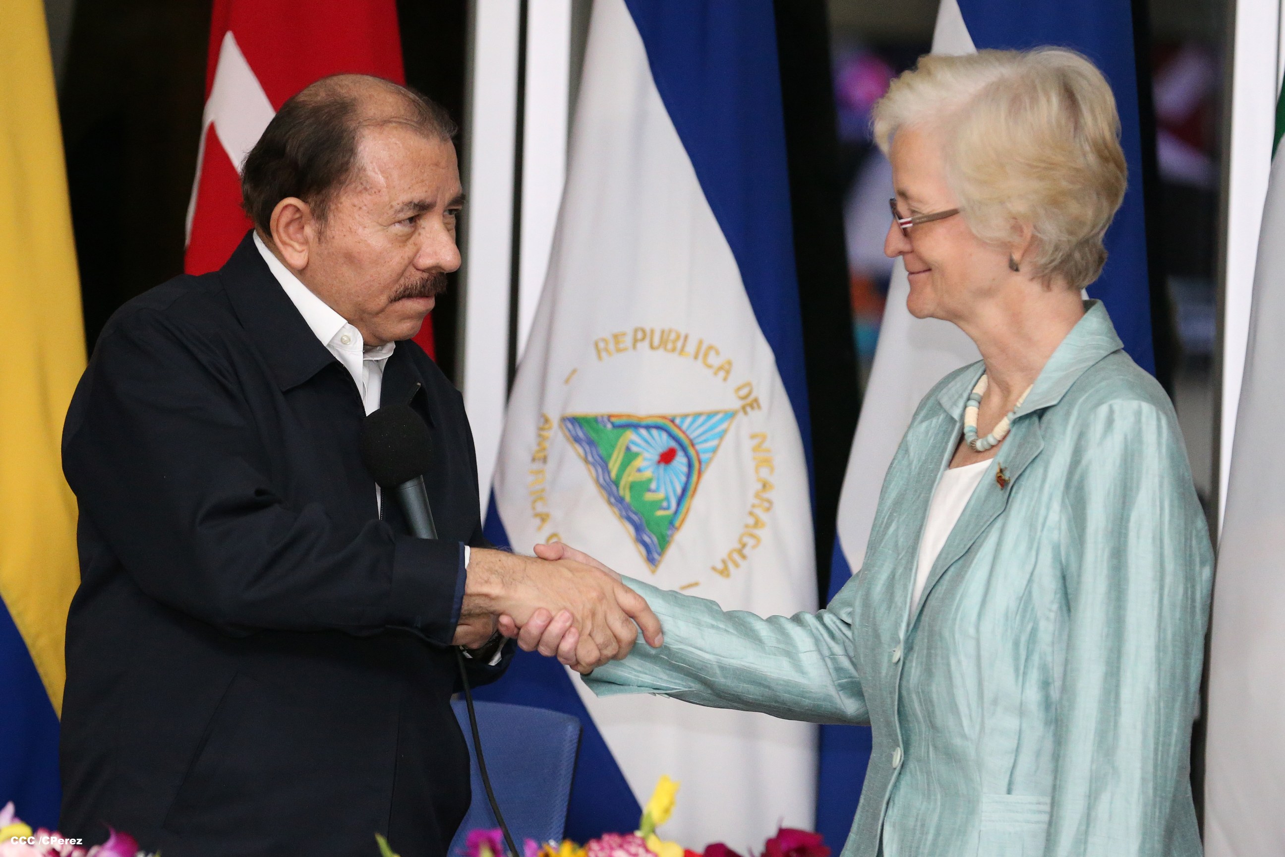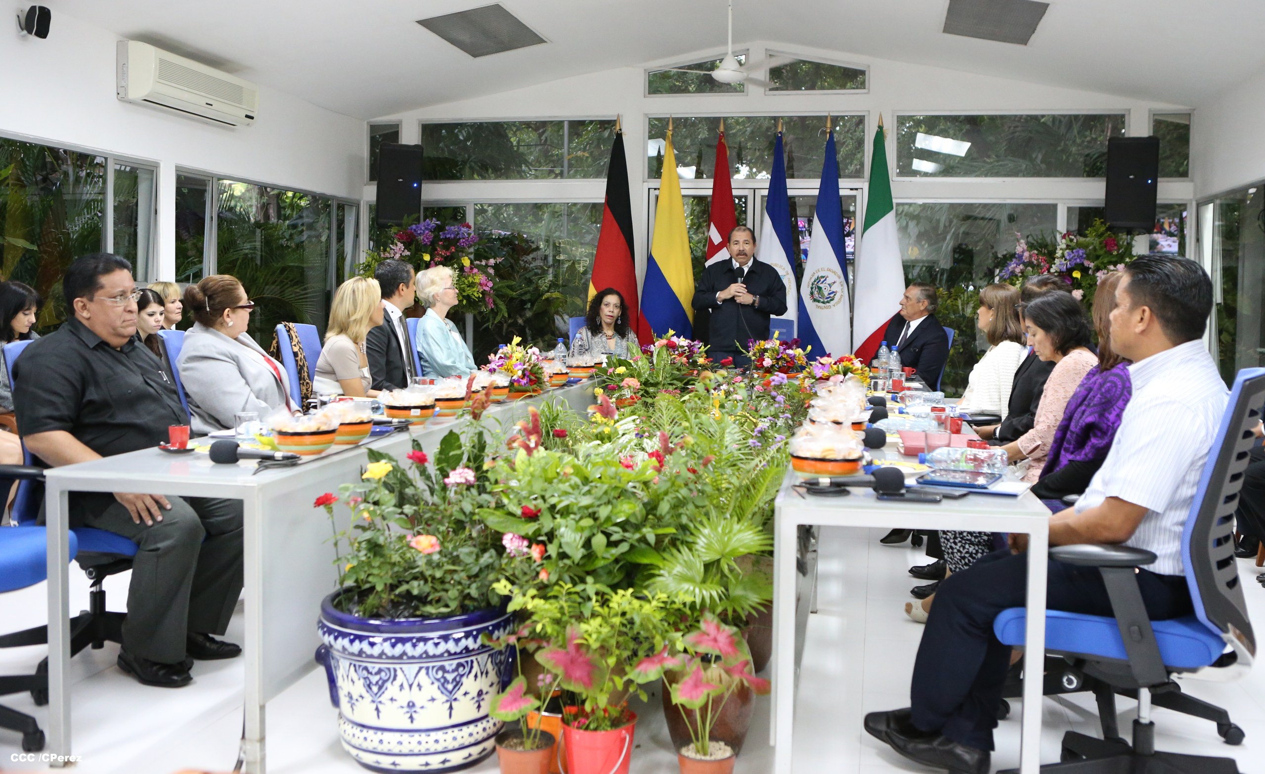 El Presidente de la República, Comandante Daniel Ortega y la Coordinadora del Consejo de Comunicación y Ciudadanía, Compañera Rosario Murillo, recibieron la tarde de este jueves las cartas credenciales de los embajadores de Colombia, El Salvador, Alemania e Italia.